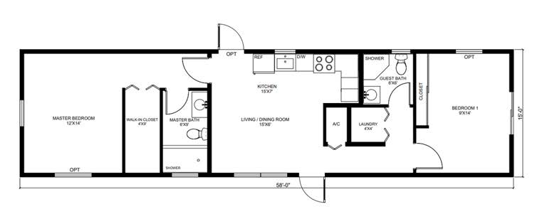 58' x 15' | 870 SQFT